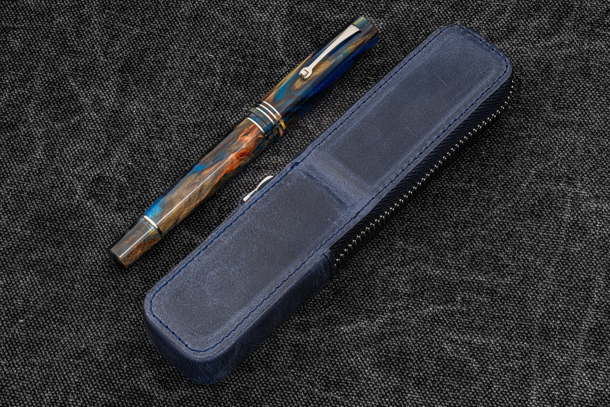Galen Leather Co. Zipper Magnum Opus Single Slot Hard Pen Case - Undyed