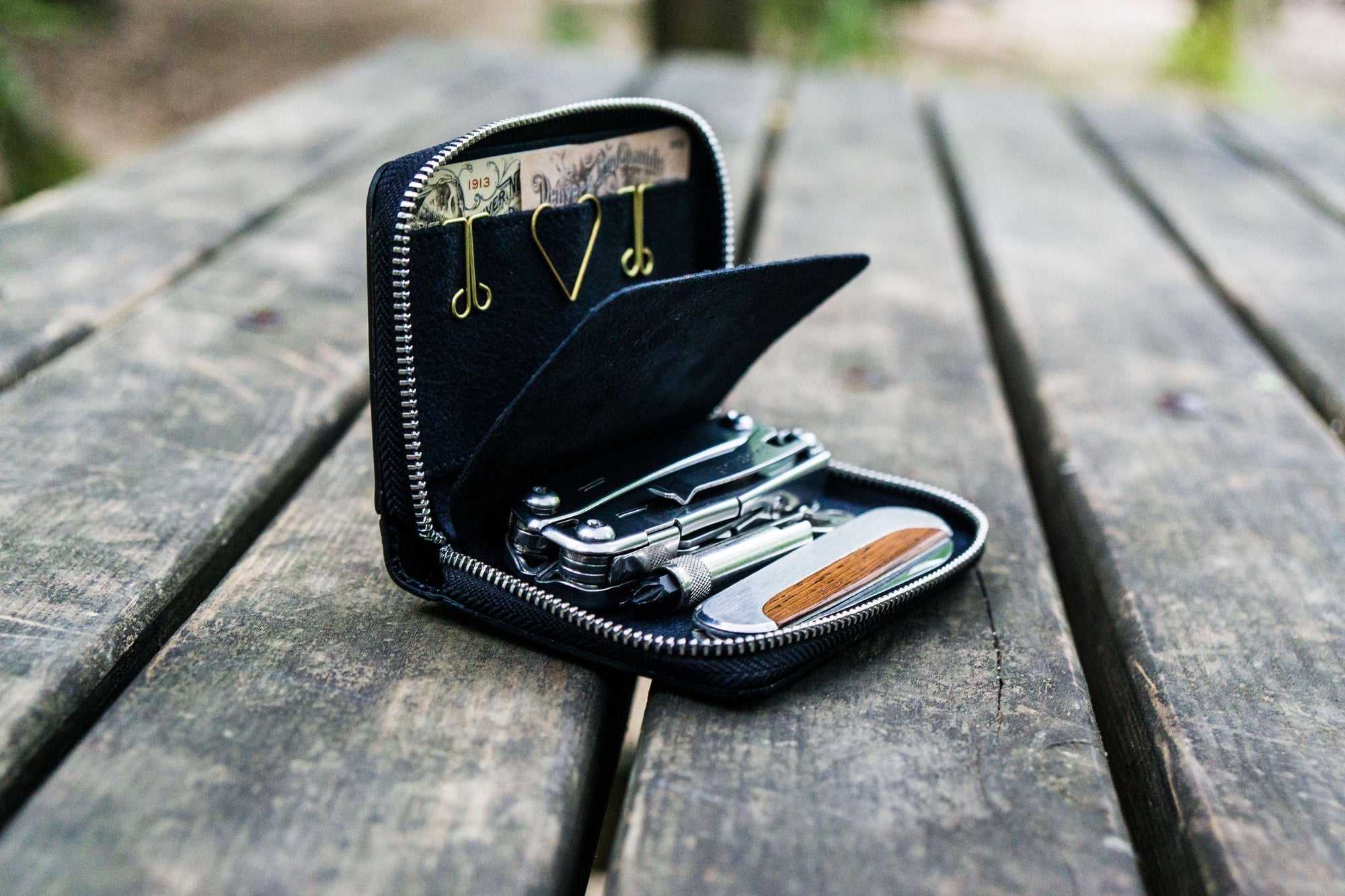 Galen Leather Co. Flap Magnum Opus 3 Slot Hard Pen Case - Smoky Grey